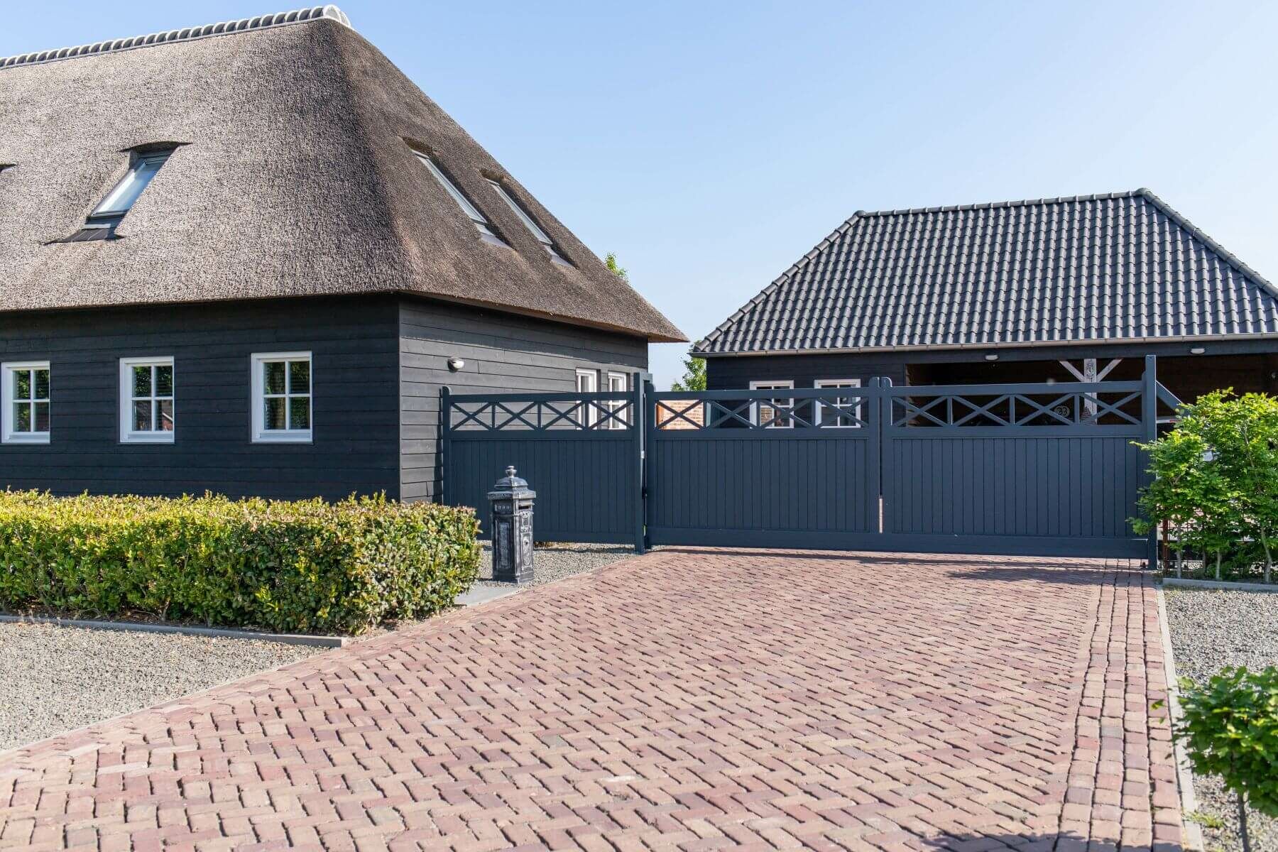 Of u nu kiest voor een houten poort, duurzaam geproduceerd of voor een “Houtlook” poort, beide geven een natuurlijke en landelijke uitstraling! De keuze is aan u. Onze poorten worden gemaakt van hardhouten houtsoorten zoals Padoek of Afrormosia; hierbij kunt u ervoor kiezen om de poort te laten “vergrijzen” of u kunt de poort behandelen met bijvoorbeeld een beits, wel of niet in een kleur, of een olie. Onze Houtlook poorten hebben het aanzicht van een houten poort maar worden gemaakt van staal waarna ze 2-laags worden gecoat in een door u te bepalen kleur.